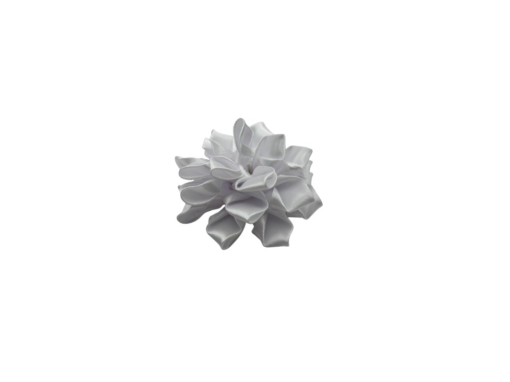 Ručně vyráběná jiřina ze saténové stuhy v elegantní bílé barvě. Saténový lesk dodává květu jemnost a čistotu, díky čemuž se skvěle hodí pro svatební a slavnostní výzdobu.
