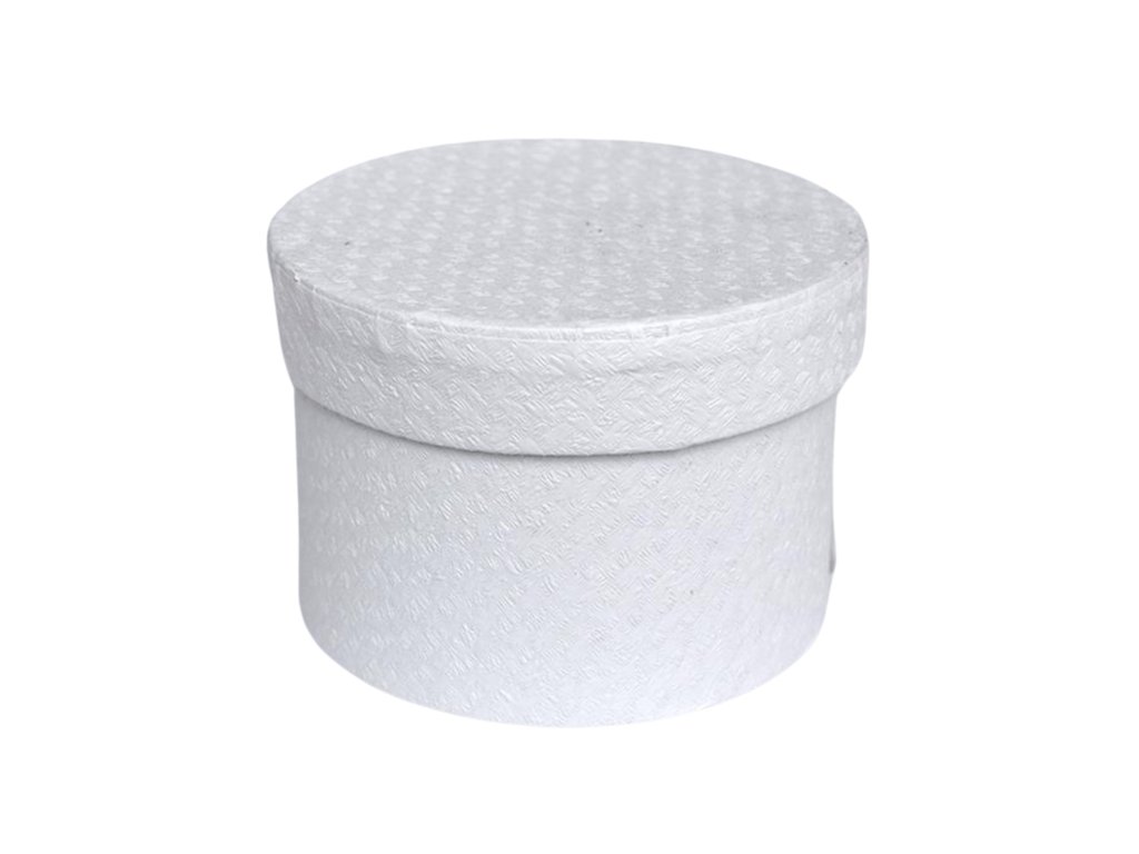 Elegantní kulatá krabička v bílé barvě s jemným plastickým vzorem je ideální pro dárkové aranžmá s květinami, malými doplňky nebo sladkostmi. Je pevná, lehká a působí slavnostně a čistě – perfektní volba pro svatby, narozeniny, křtiny nebo Vánoce.