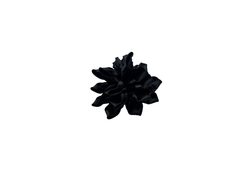 Luxusní ručně vyráběná jiřina ze saténové stuhy v černé barvě. Saténový lesk dodává květu výraznou eleganci a šmrnc, díky čemuž se skvěle hodí pro slavnostní příležitosti i moderní dekorace.
