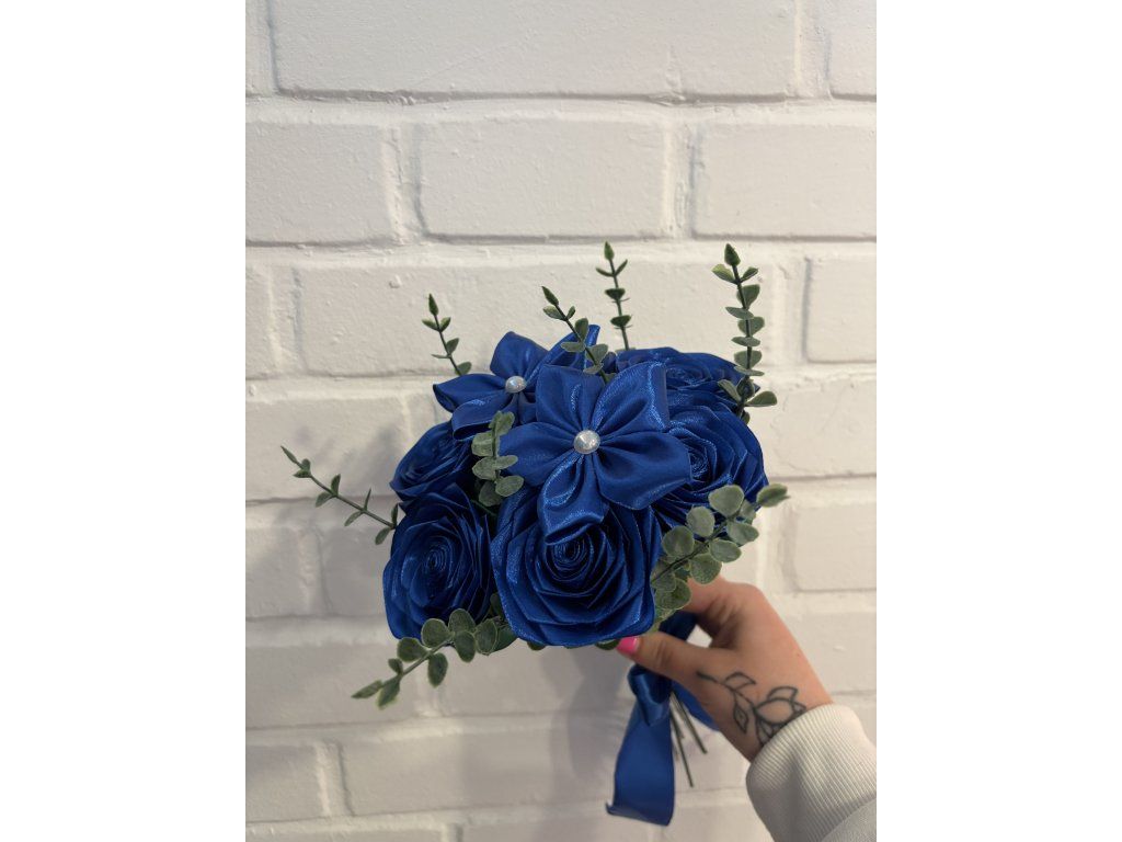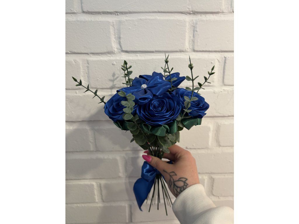 Modrá růže je symbolem splněných přání a věrnosti. V naší dílně Saténové kouzlo jsme pro vás vytvořili tuto unikátní kytici, která v sobě spojuje hloubku královské modři a moderní floristický styl. Každý okvětní lístek je ručně skládán z kvalitních saténových stuh s jemným odleskem, což kytici dodává punc luxusu.