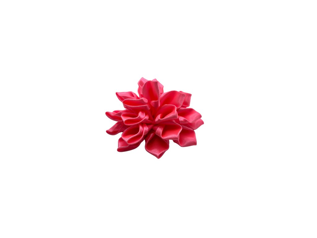 Ručně vyráběná saténová jiřina v tmavě růžové barvě, která okouzlí svým jemným leskem a výrazným vzhledem. Elegantní a romantická dekorace, která se hodí pro každou slavnostní příležitost.